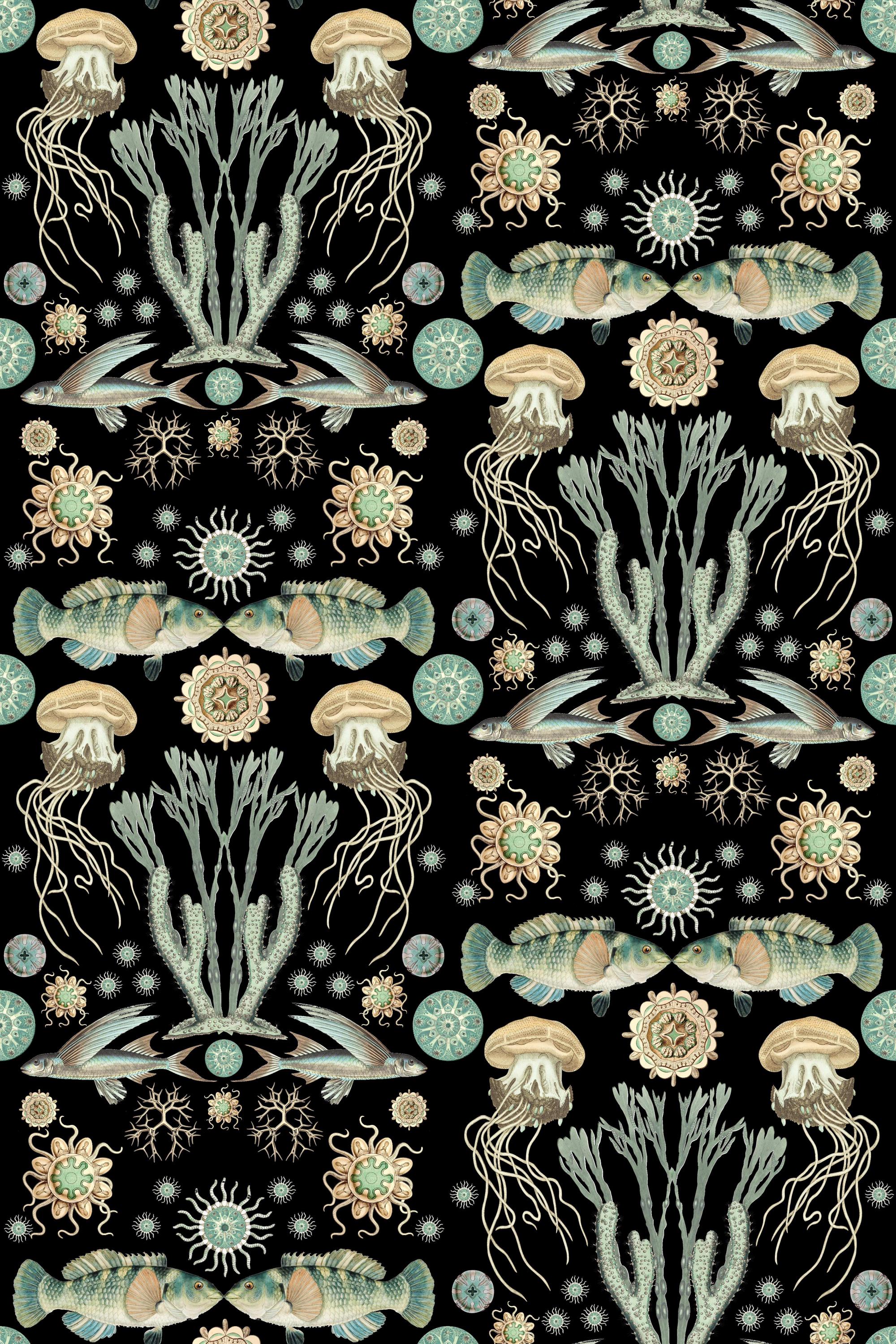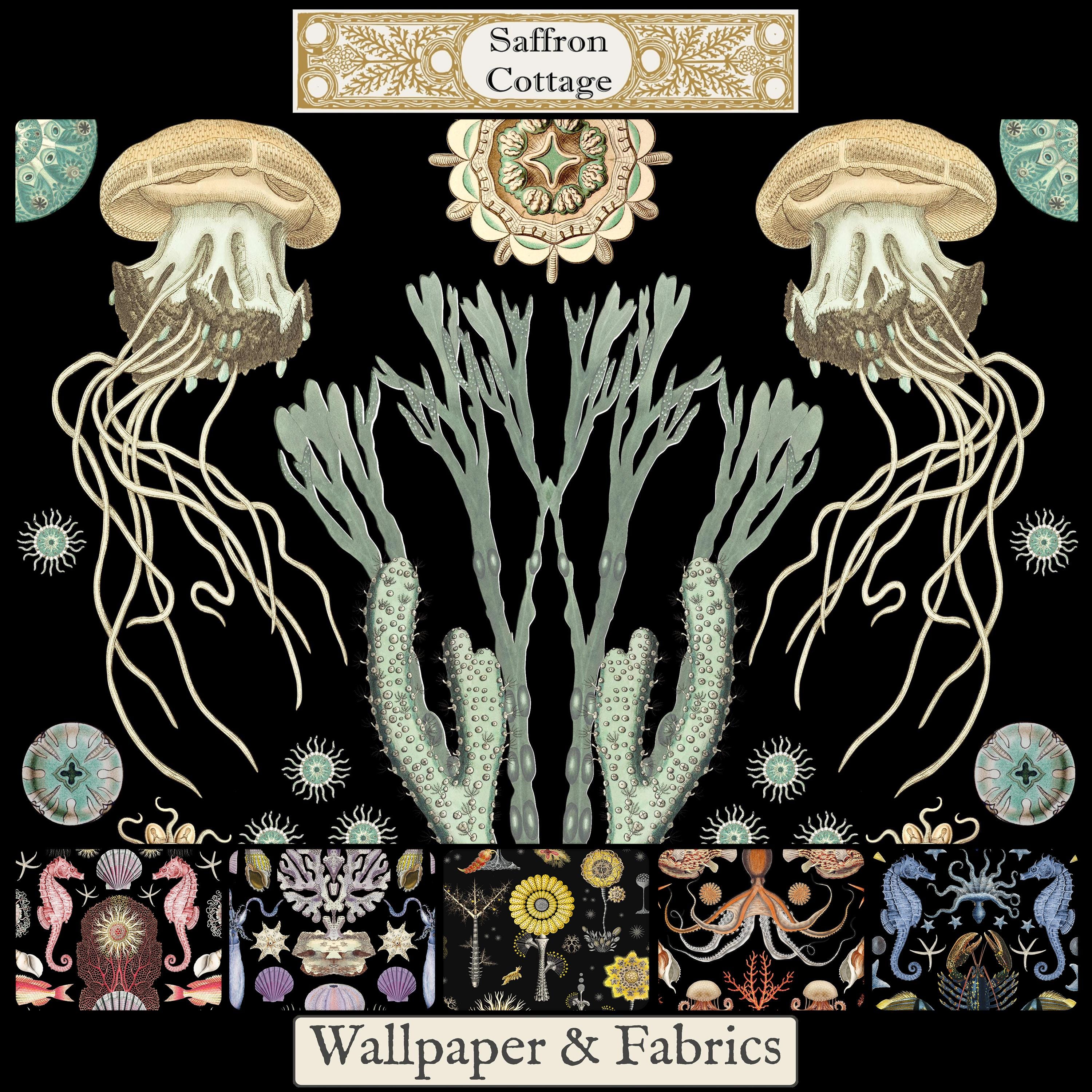 Our OCEANA collection says it all. An Abundance of wonderful FISH, CRUSTEATIONS, & CORALS! Produced in the original patterns and colors this wallpaper collection will bring artistic illustrations from the past into your home. Each pattern repeat is 24X36 inches.