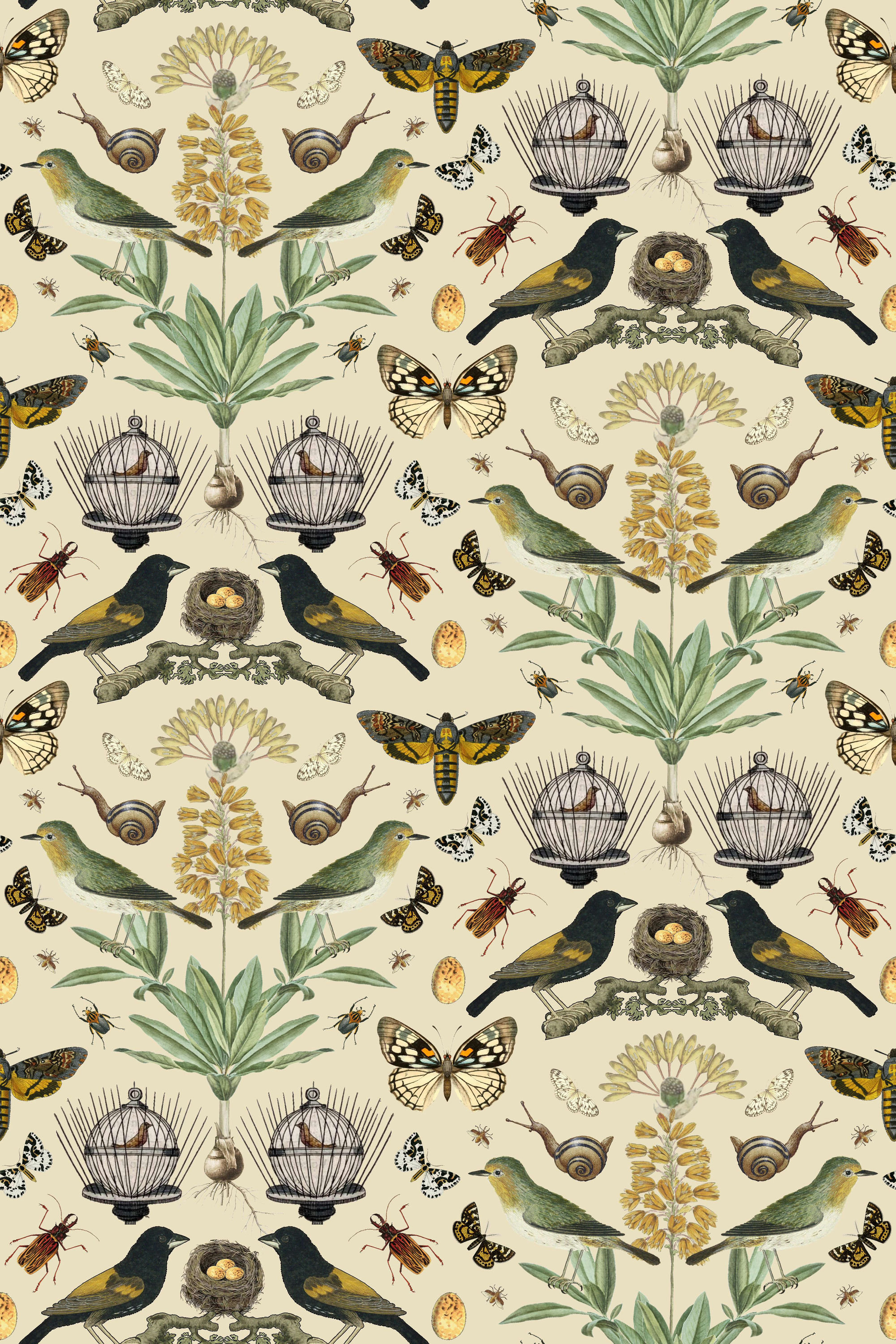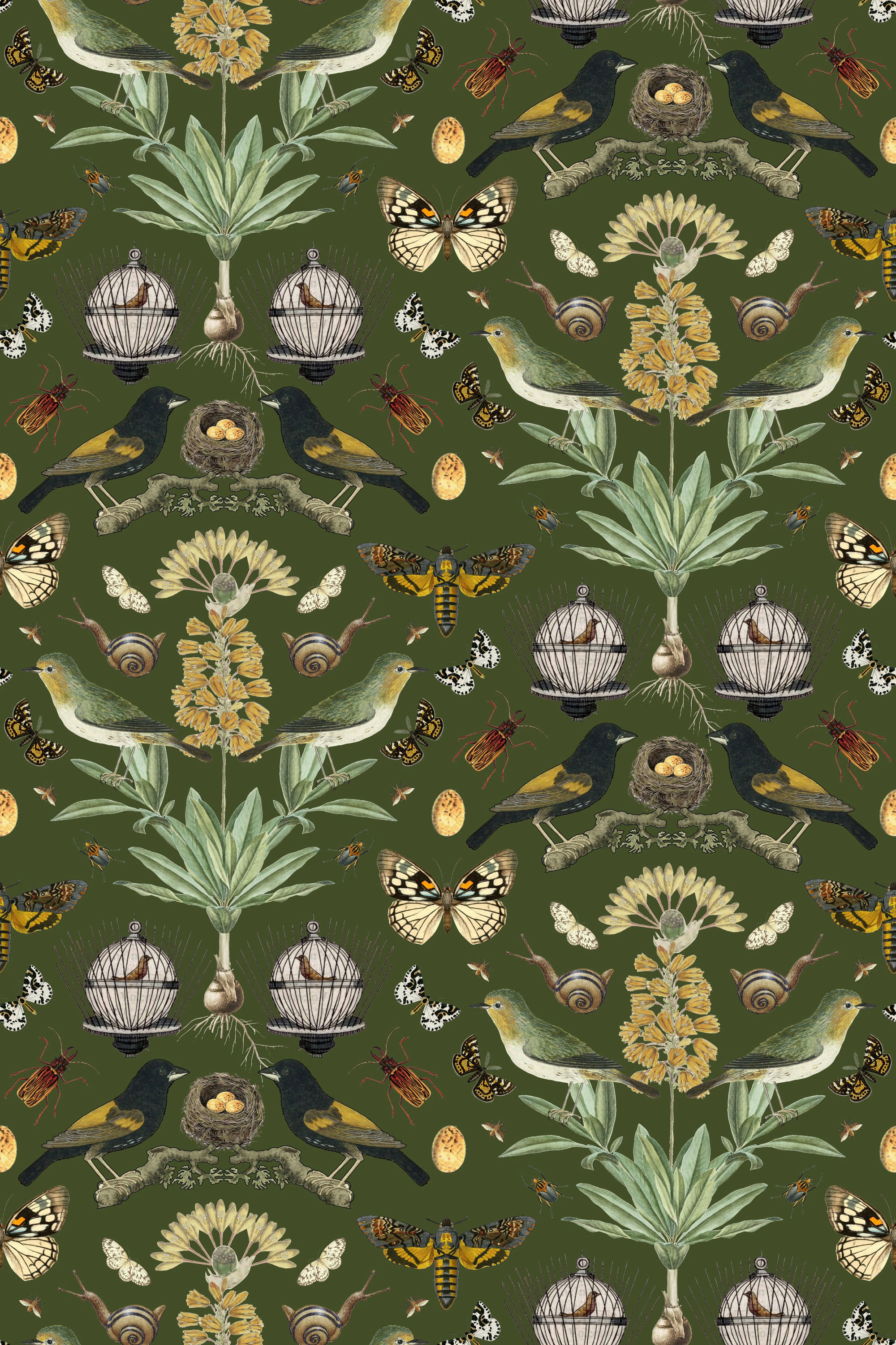 Our ABUNDANCE collection says it all. An Abundance of wonderful birds, botanicals & bugs! Produced in the original patterns and colors this wallpaper collection will bring artistic illustrations from the past into your home. Each pattern repeat is 12x18 inches.