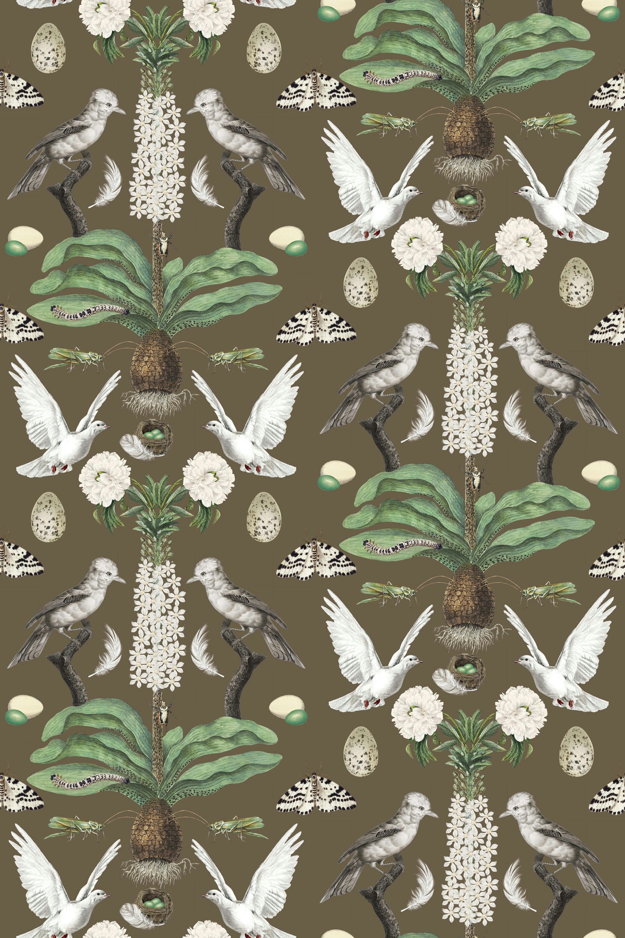 ABUNDANCE COLLECTION WALLPAPER * White Doves on Tobacco * 12x18 Repeat